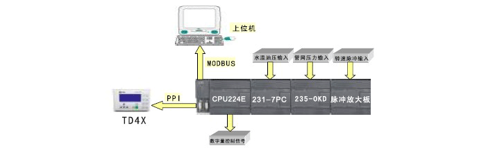 3);系統除了由TD400完成(chéng)監控外,還(hái)需要通信口與上位機進(jìn)行MODBUS通信,組成(chéng)網絡。