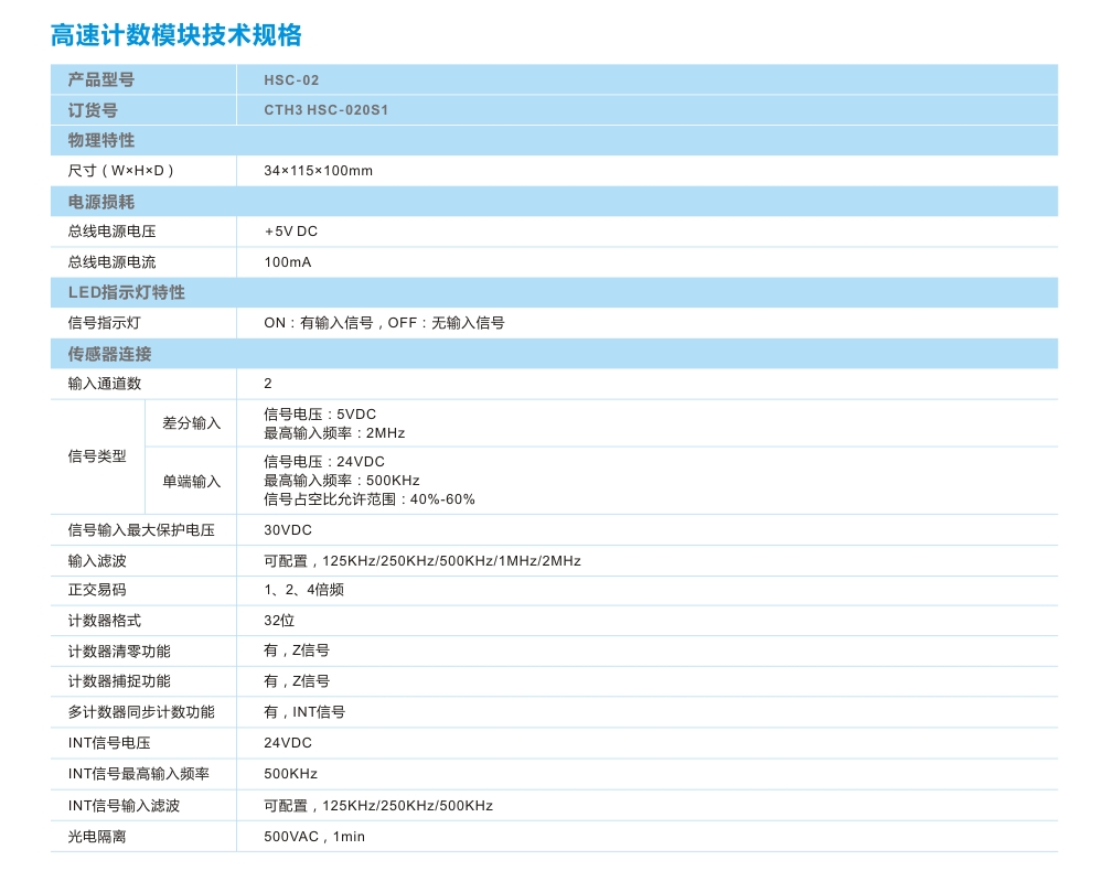 規 格:高速計數模塊,2路2MHz差分/500KHz單端信号輸入