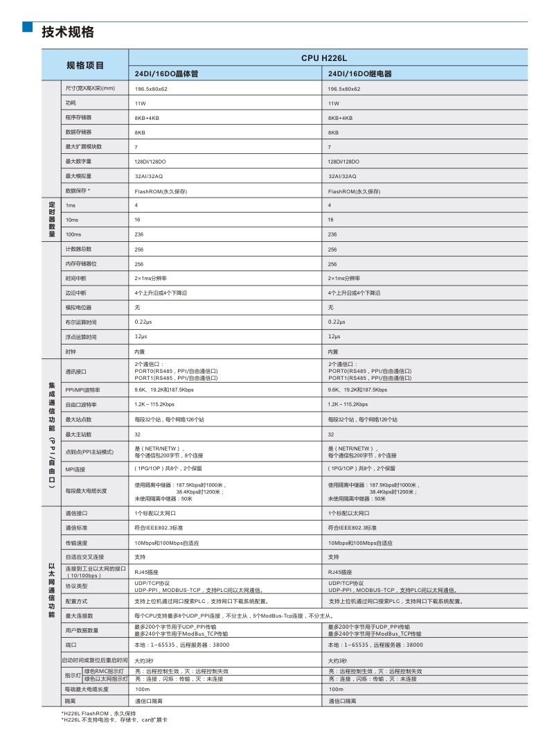 CPU H226L 12KB程序空間/8KB數據空間,220VAC電源,24DI/16DO繼電器輸出,2A,2個PPI/自由通訊口,1個以太網通訊口;支持模拟量擴展闆與擴展模塊 CTH2 216-2BD33-0X40
