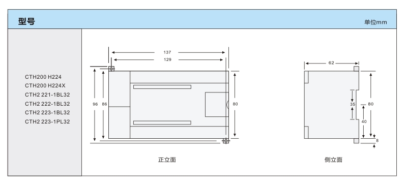 規格參數 訂貨号 PNP源型數字量輸出模塊, 8點晶體管輸出,24VDC,0.5A(輸出保護) CTH2 222-1BF32 PNP源型數字量輸出模塊,16點晶體管輸出,24VDC,0.5A(輸出保護) CTH2 222-1BH32 PNP源型數字量輸出模塊,32點晶體管輸出,24VDC,0.5A(輸出保護) CTH2 222-1BL32 PNP源型數字量輸出模塊,16點繼電器輸出,2A CTH2 222-1HH32 數字量輸出模塊,8點繼電器輸出,2A CTH2 222-1HF32 NPN漏型數字量輸出模塊, 8點晶體管輸出,24VDC,0.5A