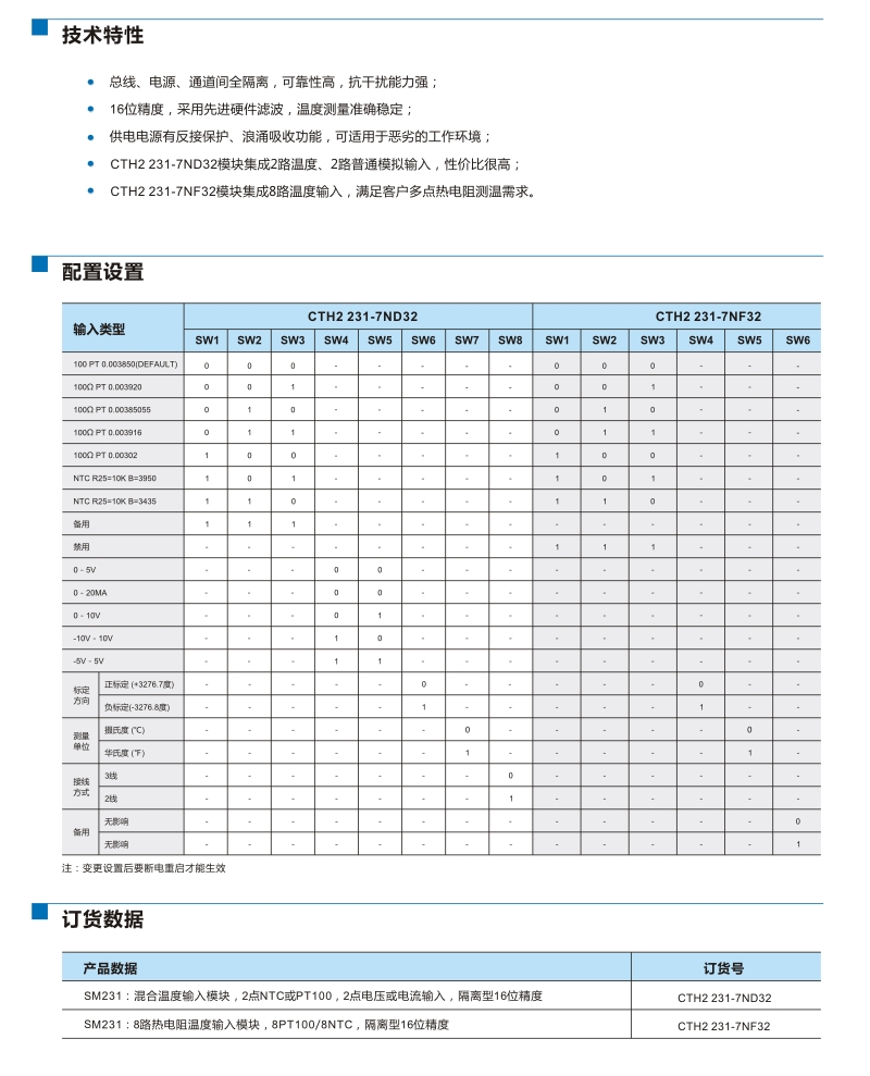 SM 231:混合溫度輸入模塊,2點NTC或PT100,2點0~20mA電流或±5V,±10V,0~10V,0~5V電壓輸入,隔離型16位精度/SM 231:熱電阻溫度輸入模塊,8NTC/PT100,隔離型16位精度