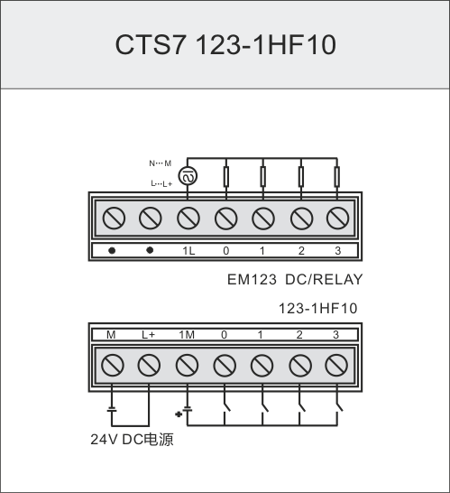 規格參數 訂貨号 CTSC-100 EM123數字量I/O模塊, 4DI×24V DC,4DO×繼電器輸出 CTS7 123-1HF10